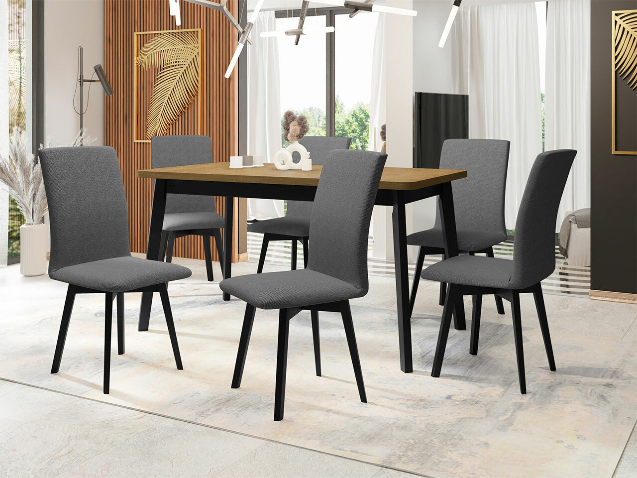 Étkezőgarnitúra 24 (OSLO 6 + LUNA 2) III, Asztal színe: Sonoma tölgy + Fekete, Kárpit: Kronos 22