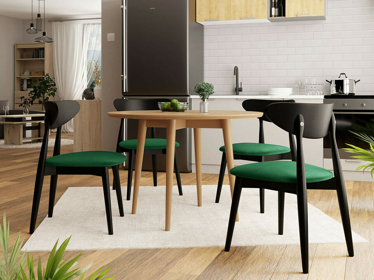 Étkezőgarnitúra Zestaw 01 4xS80 + INES FI, Asztal színe: Fekete, Szék színe: Magic Velvet 2225 + Barna