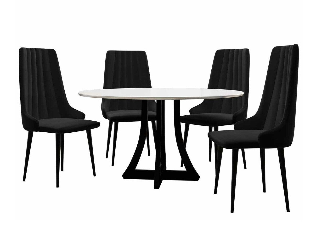 Étkezőgarnitúra Zestaw 03 4xS93 + ORION FI, Asztal színe: Fényes fekete + Fényes fehér, Szék színe: Fekete + Magic Velvet 2219