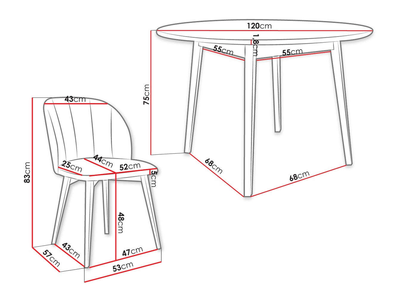 Szék méretek83 x 53 x 57 cm