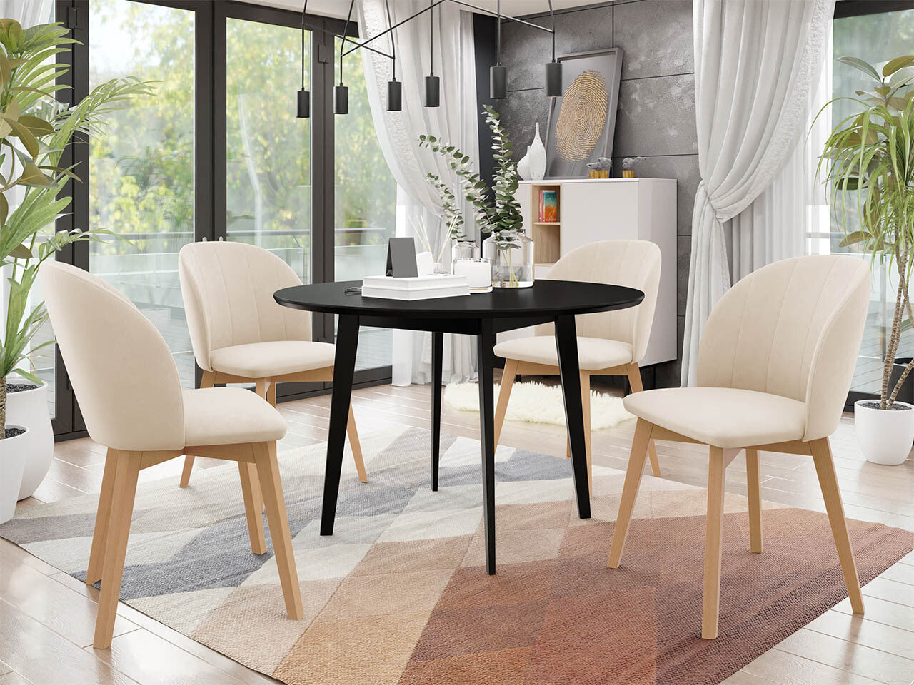 Étkezőgarnitúra Zestaw 04 4xS100 SKANDI FI, Szék színe: Barna + Magic Velvet 2250, Asztal színe: Fekete