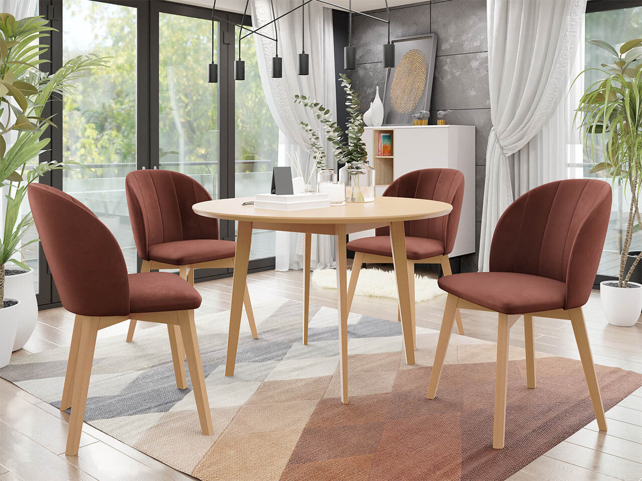 Étkezőgarnitúra Zestaw 04 4xS100 SKANDI FI, Szék színe: Barna + Magic Velvet 2258, Asztal színe: Barna