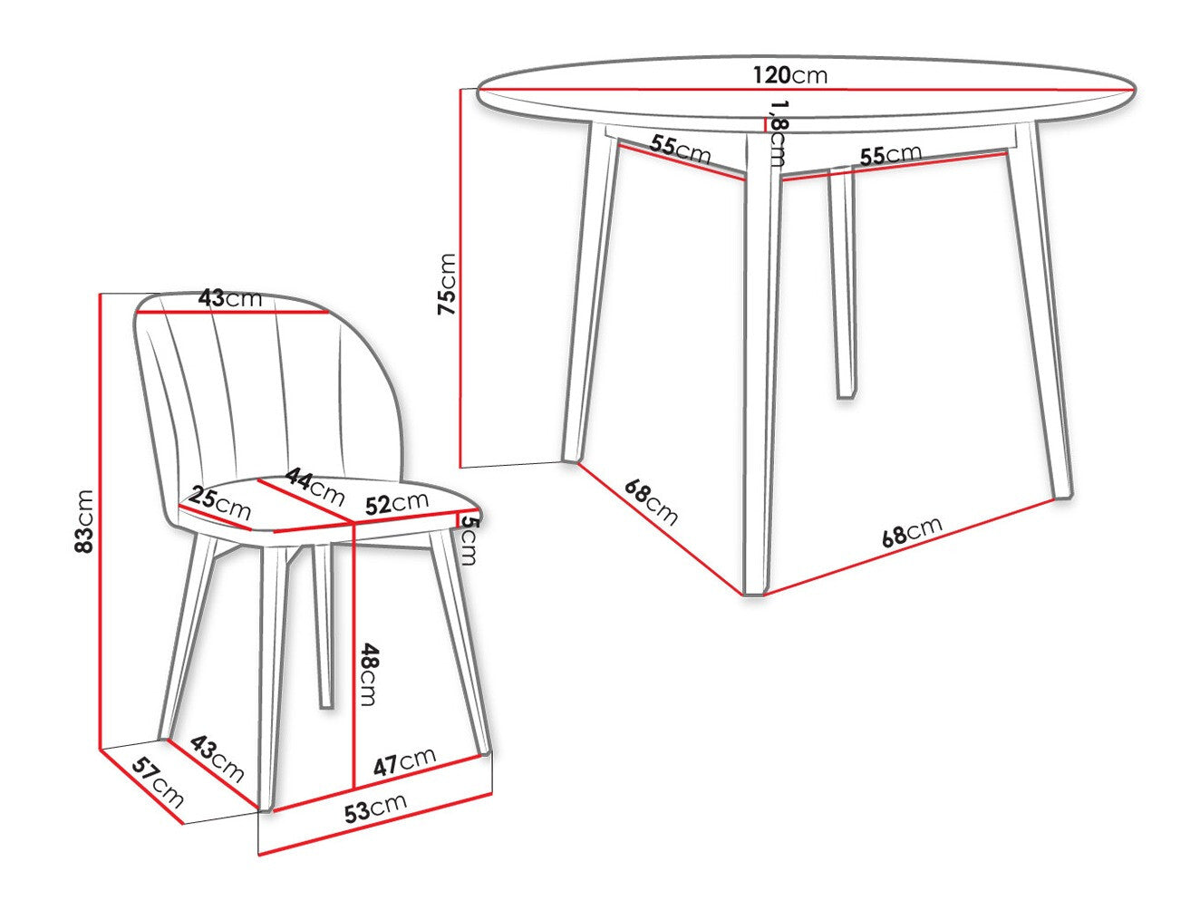 Szék méretek83 x 53 x 57 cm