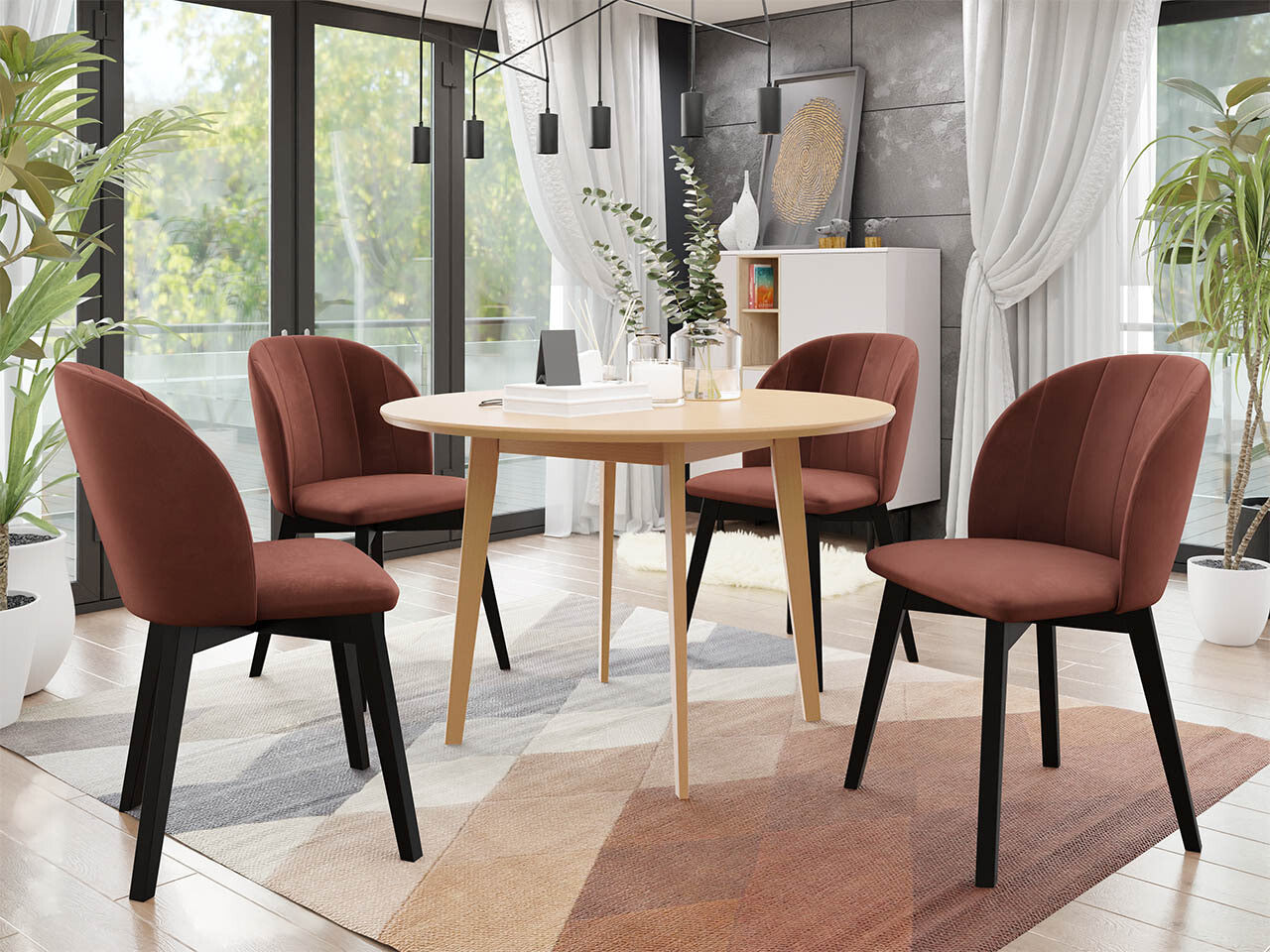 Étkezőgarnitúra Zestaw 04 4xS100 SKANDI FI, Szék színe: Fekete + Magic Velvet 2258, Asztal színe: Barna