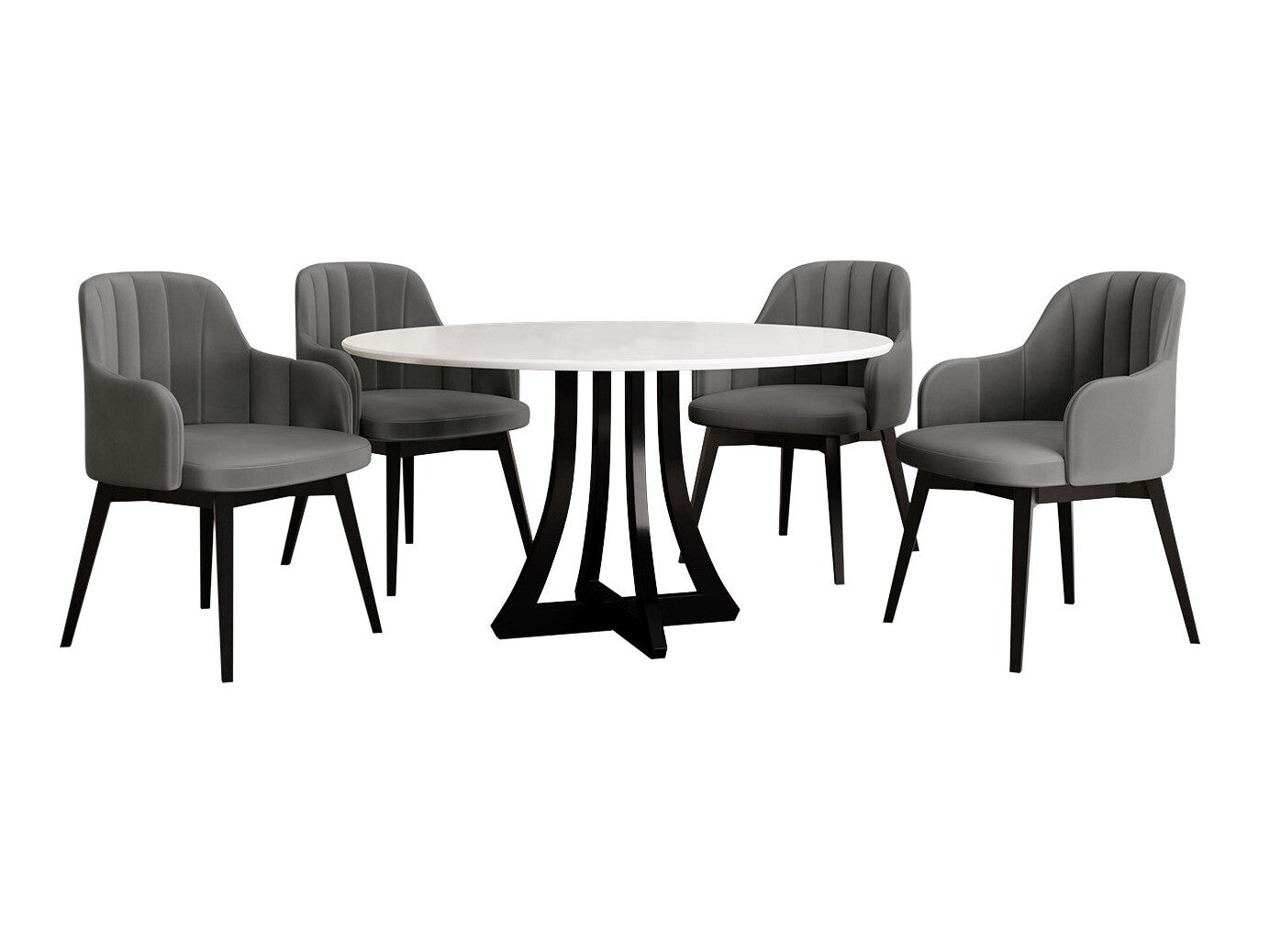 Étkezőgarnitúra Zestaw 05 4xS105 ORION FI 120, Asztal színe: Fényes fehér + Fényes fekete, Szék színe: Fekete + Magic Velvet 2217