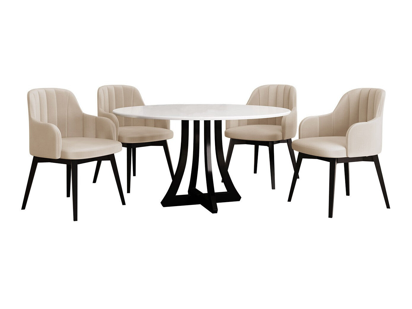 Étkezőgarnitúra Zestaw 05 4xS105 ORION FI 120, Asztal színe: Fényes fehér + Fényes fekete, Szék színe: Fekete + Magic Velvet 2250