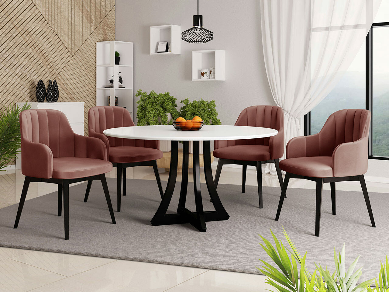 Étkezőgarnitúra Zestaw 05 4xS105 ORION FI 120, Asztal színe: Fényes fehér + Fényes fekete, Szék színe: Fekete + Magic Velvet 2258