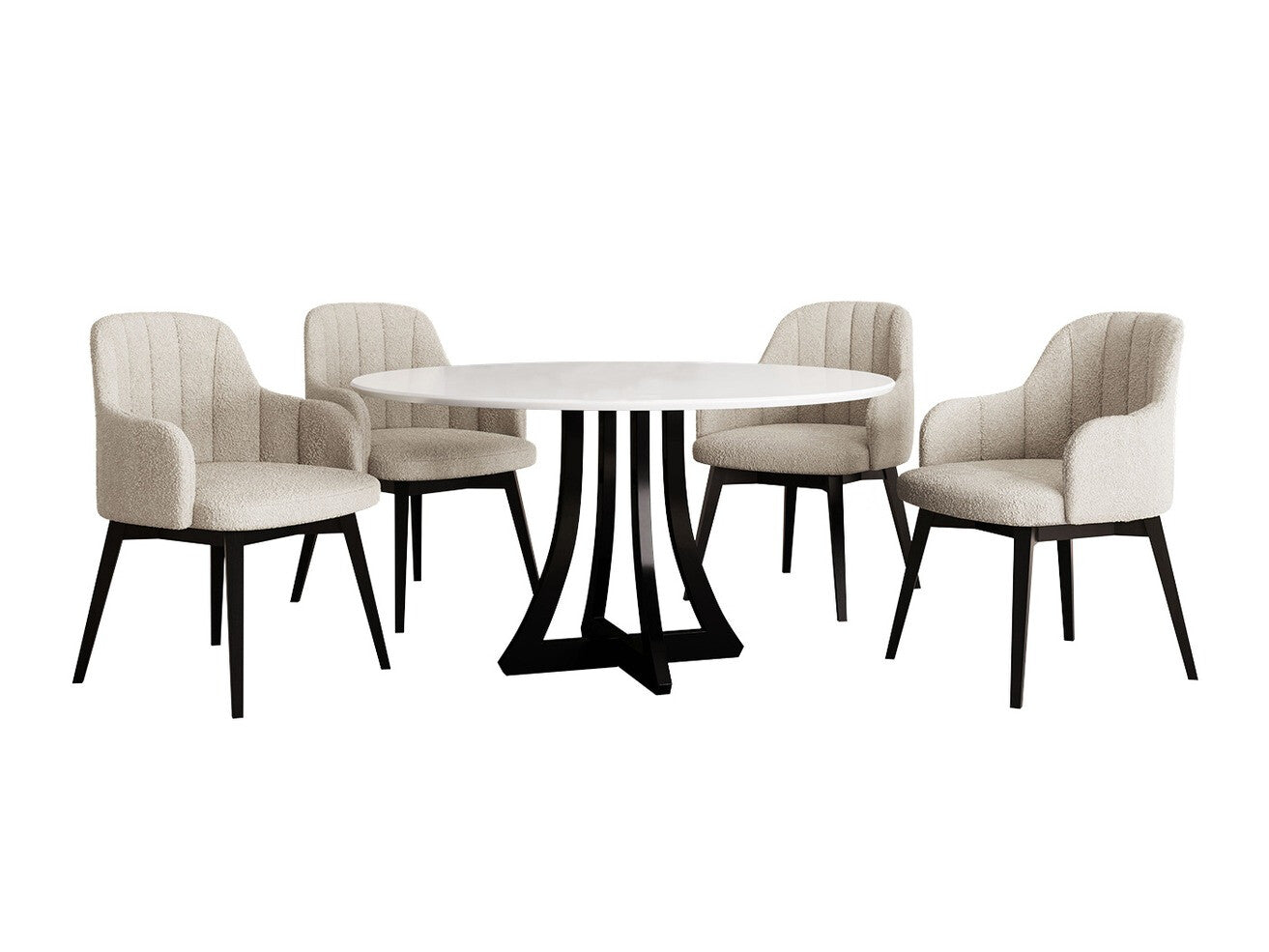 Étkezőgarnitúra Zestaw 05 4xS105 ORION FI, Asztal színe: Fényes fehér + Fényes fekete, Szék színe: Fekete + Baloo 2074