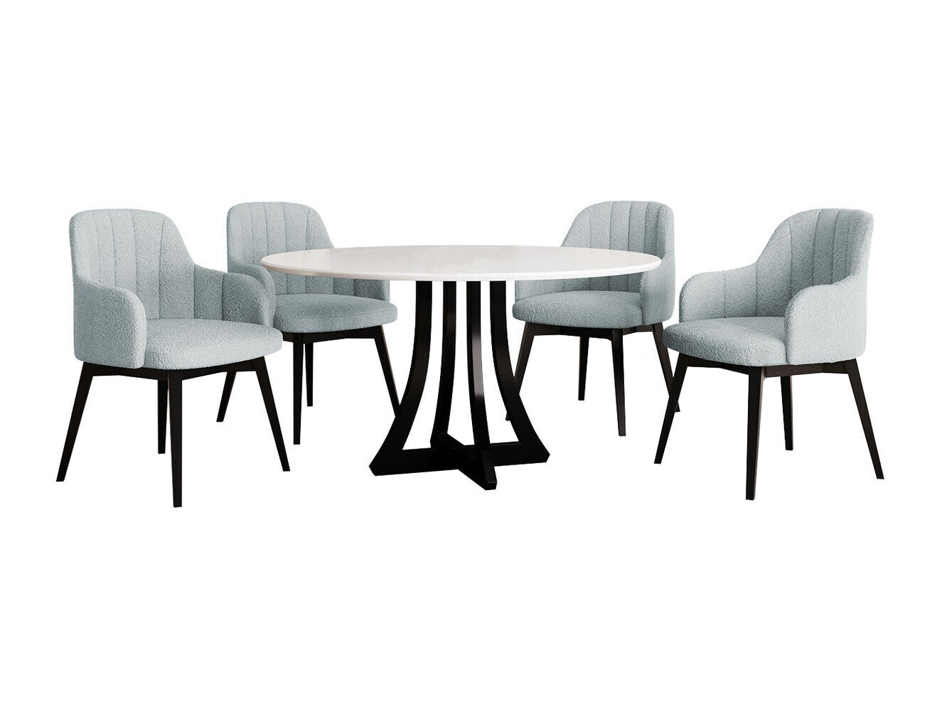 Étkezőgarnitúra Zestaw 05 4xS105 ORION FI, Asztal színe: Fényes fehér + Fényes fekete, Szék színe: Fekete + Baloo 2086