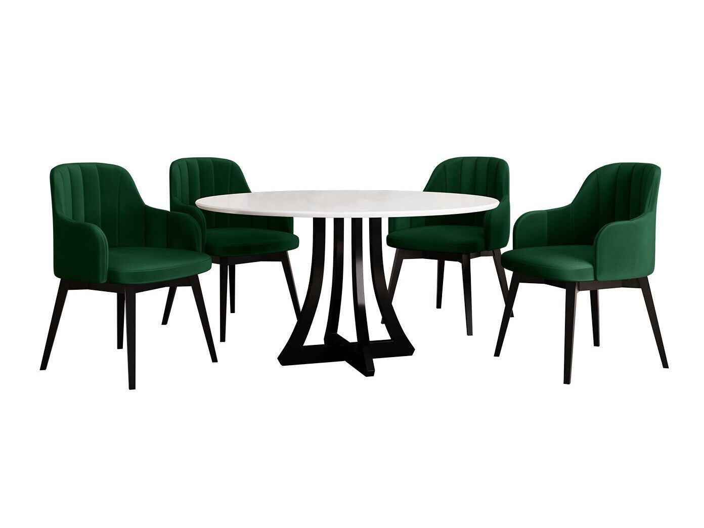 Étkezőgarnitúra Zestaw 05 4xS105 ORION FI, Asztal színe: Fényes fehér + Fényes fekete, Szék színe: Fekete + Magic Velvet 2225