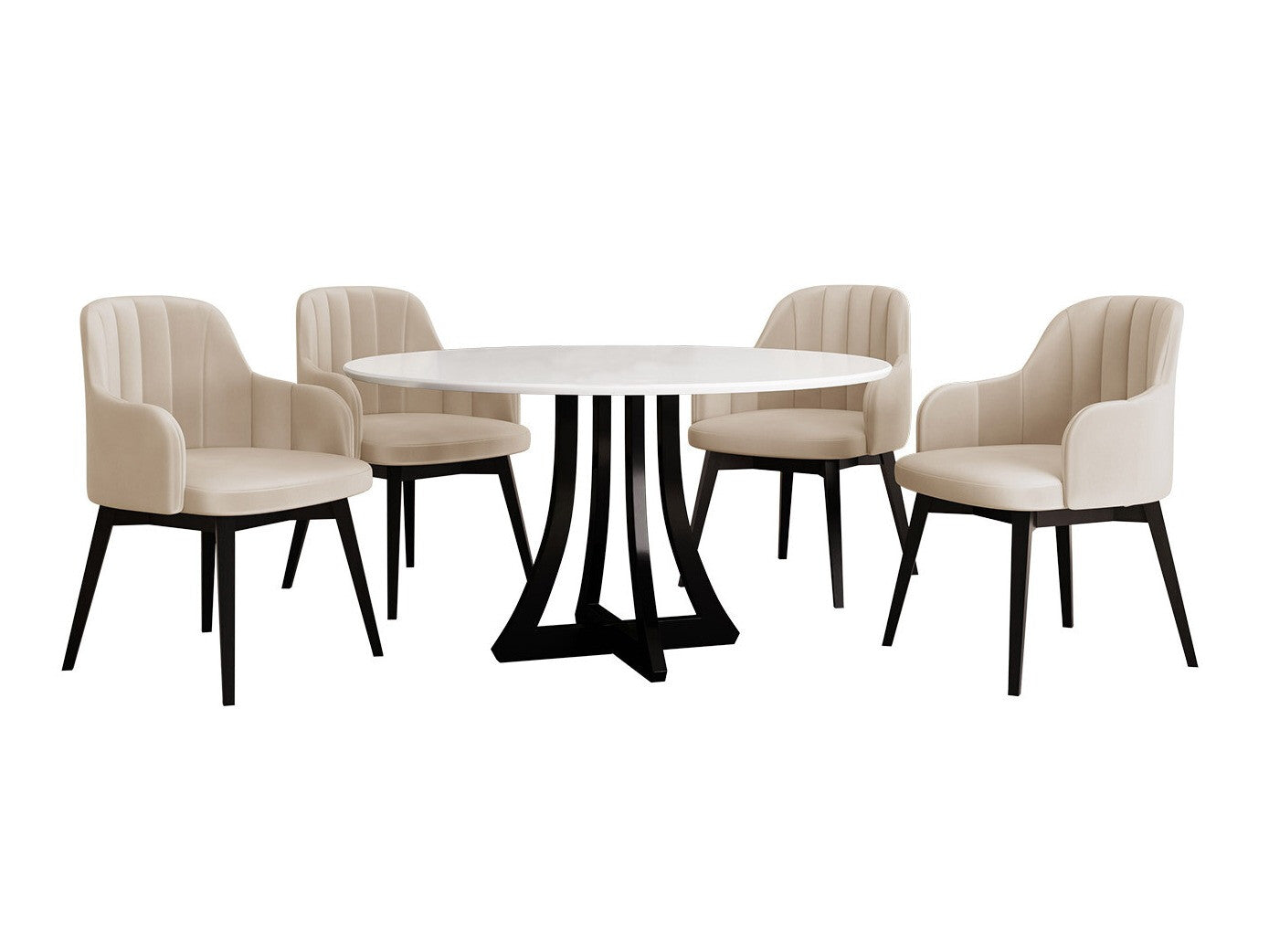 Étkezőgarnitúra Zestaw 05 4xS105 ORION FI, Asztal színe: Fényes fehér + Fényes fekete, Szék színe: Fekete + Magic Velvet 2250