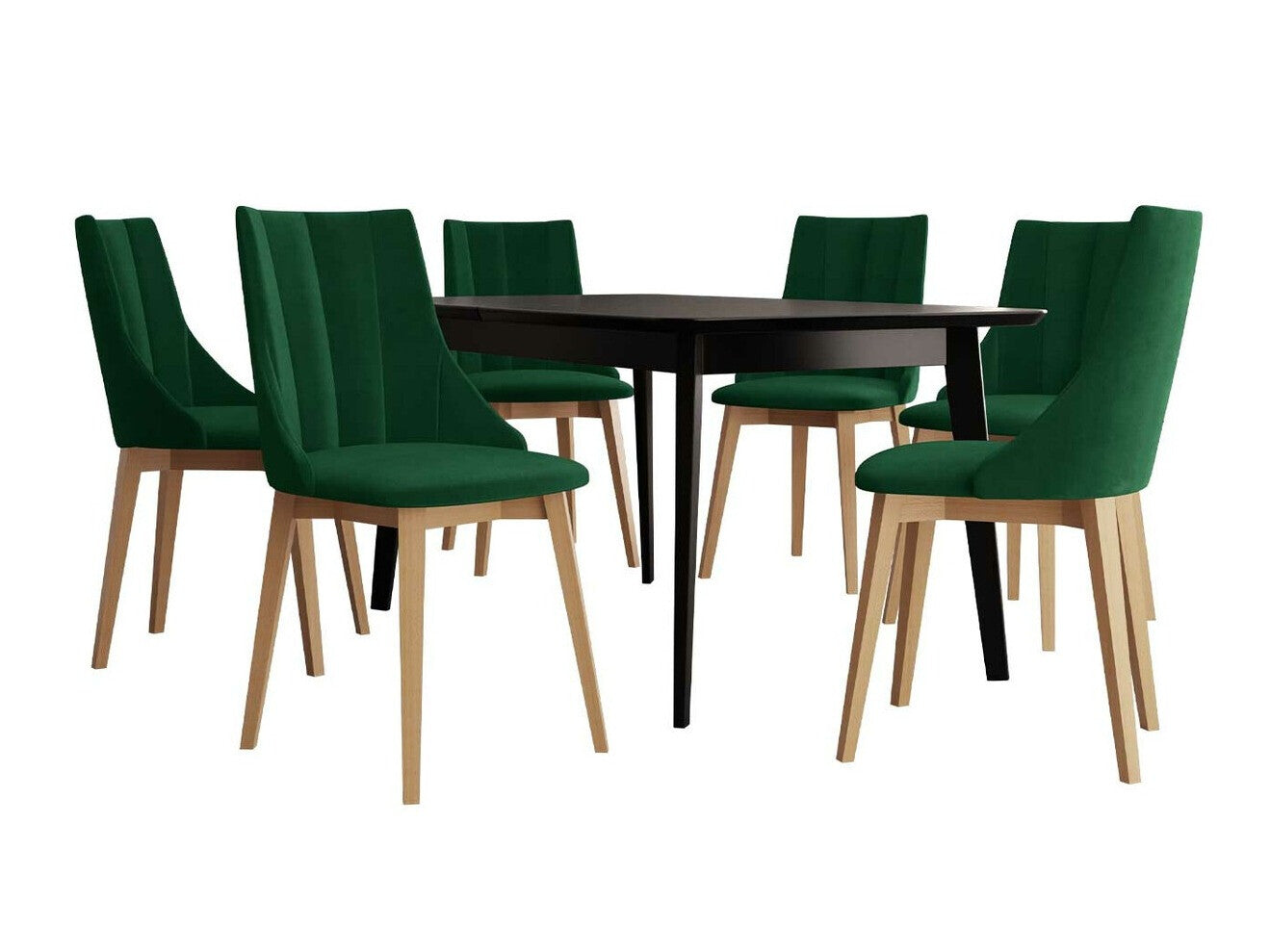 Étkezőgarnitúra Zestaw 07 6xS97 SKANDI 140x80, Szék színe: Barna + Magic Velvet 2225, Asztal színe: Fekete