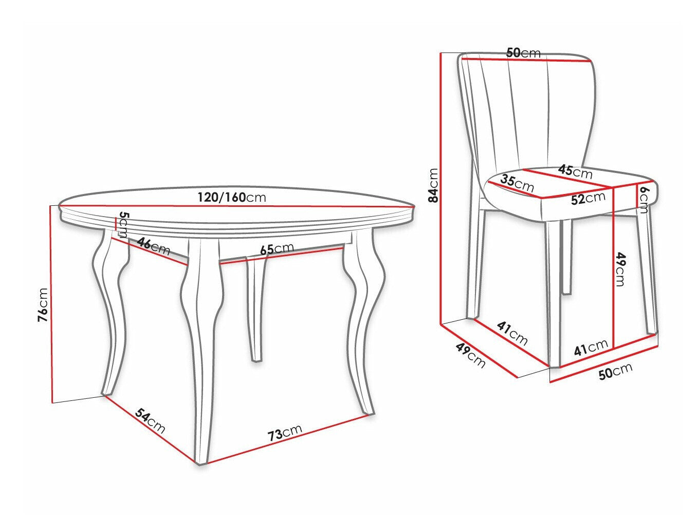 Étkezőgarnitúra Zestaw 08 4xS106 LARA FI 120, Szék színe: Magic Velvet 2217