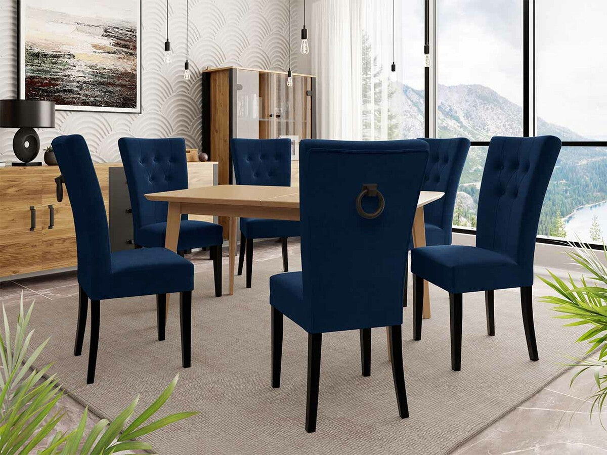 Étkezőgarnitúra Zestaw 09 6xS67 SKANDI 140x80, Szék színe: Fekete + Magic Velvet 2216, Asztal színe: Barna, Színes dekorációk: Fekete