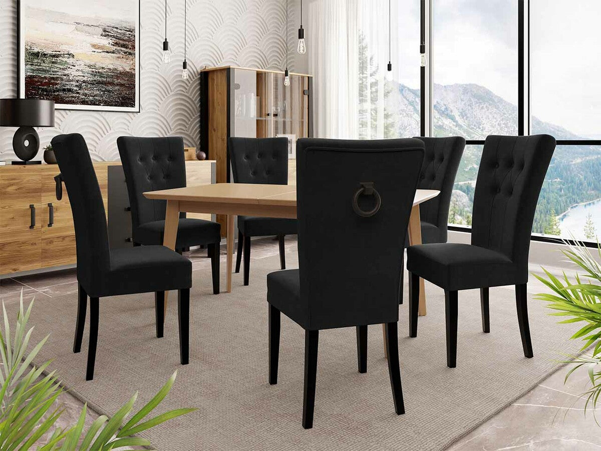 Étkezőgarnitúra Zestaw 09 6xS67 SKANDI 140x80, Szék színe: Fekete + Magic Velvet 2219, Asztal színe: Barna, Színes dekorációk: Fekete