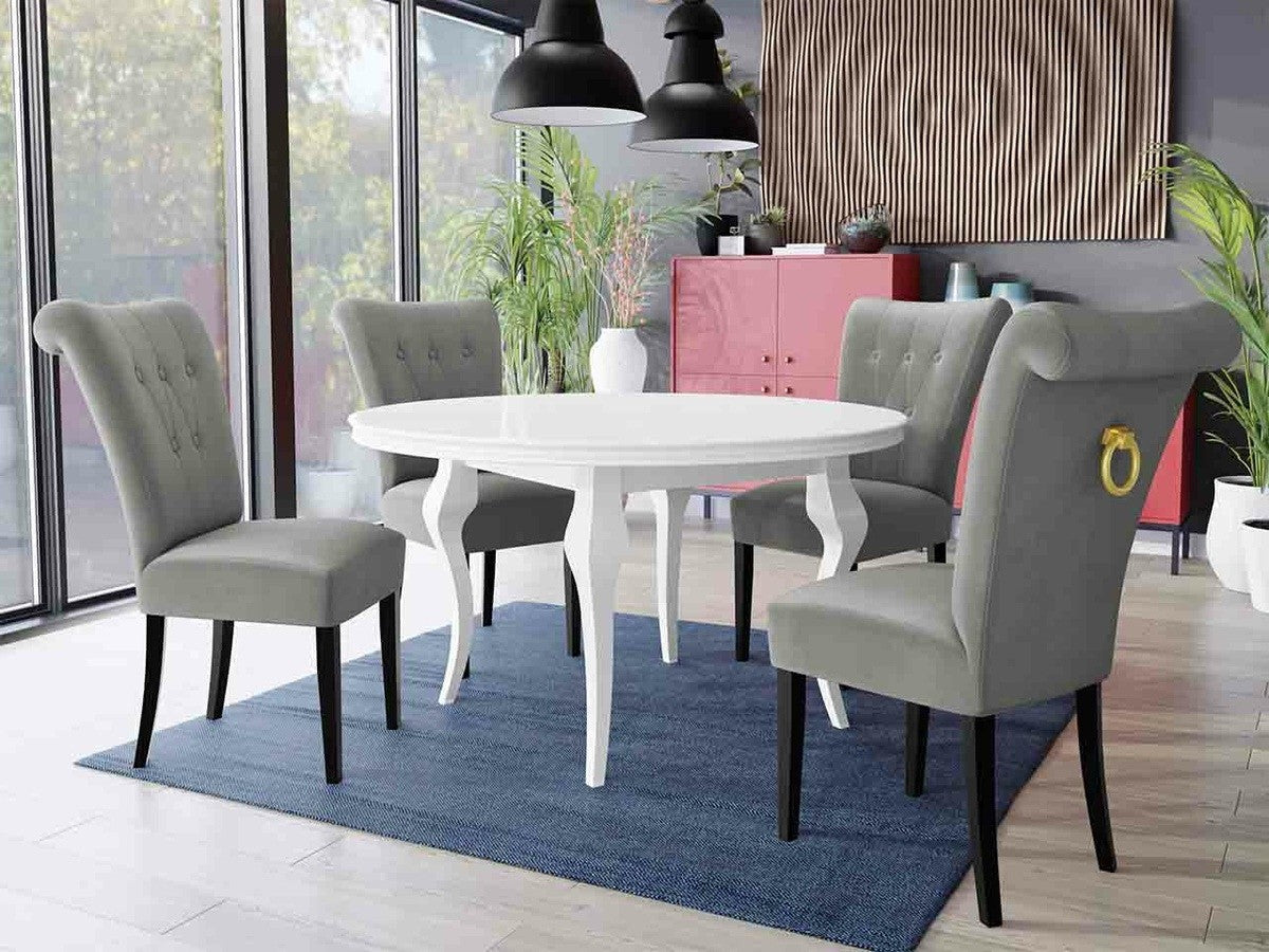 Étkezőgarnitúra Zestaw 10 4xS65 LARA FI, Színes dekorációk: Aranysárga, Szék színe: Fekete + Magic Velvet 2217