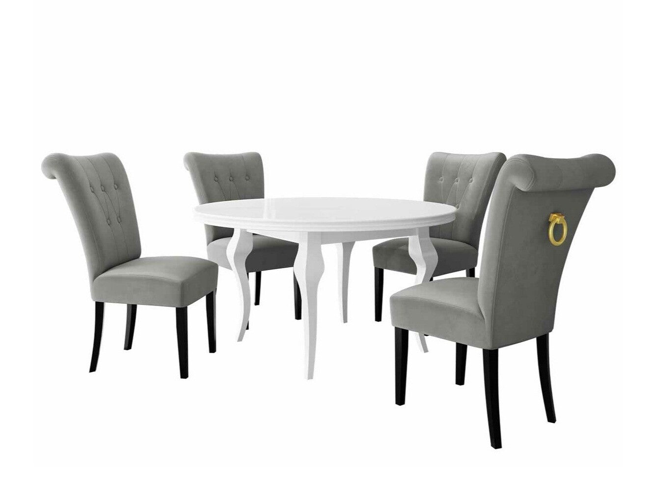 Étkezőgarnitúra Zestaw 10 4xS65 LARA FI, Színes dekorációk: Aranysárga, Szék színe: Fekete + Magic Velvet 2217