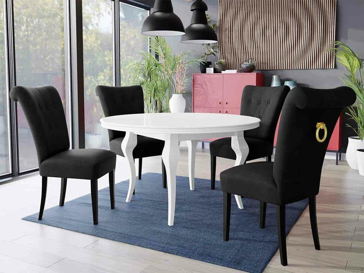 Étkezőgarnitúra Zestaw 10 4xS65 LARA FI, Színes dekorációk: Aranysárga, Szék színe: Fekete + Magic Velvet 2219