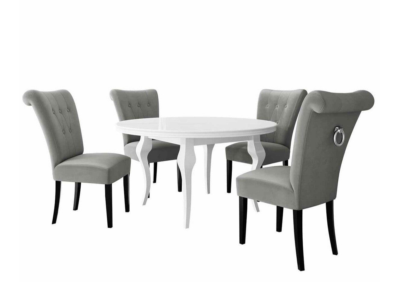 Étkezőgarnitúra Zestaw 10 4xS65 LARA FI, Színes dekorációk: Ezüst, Szék színe: Fekete + Magic Velvet 2217