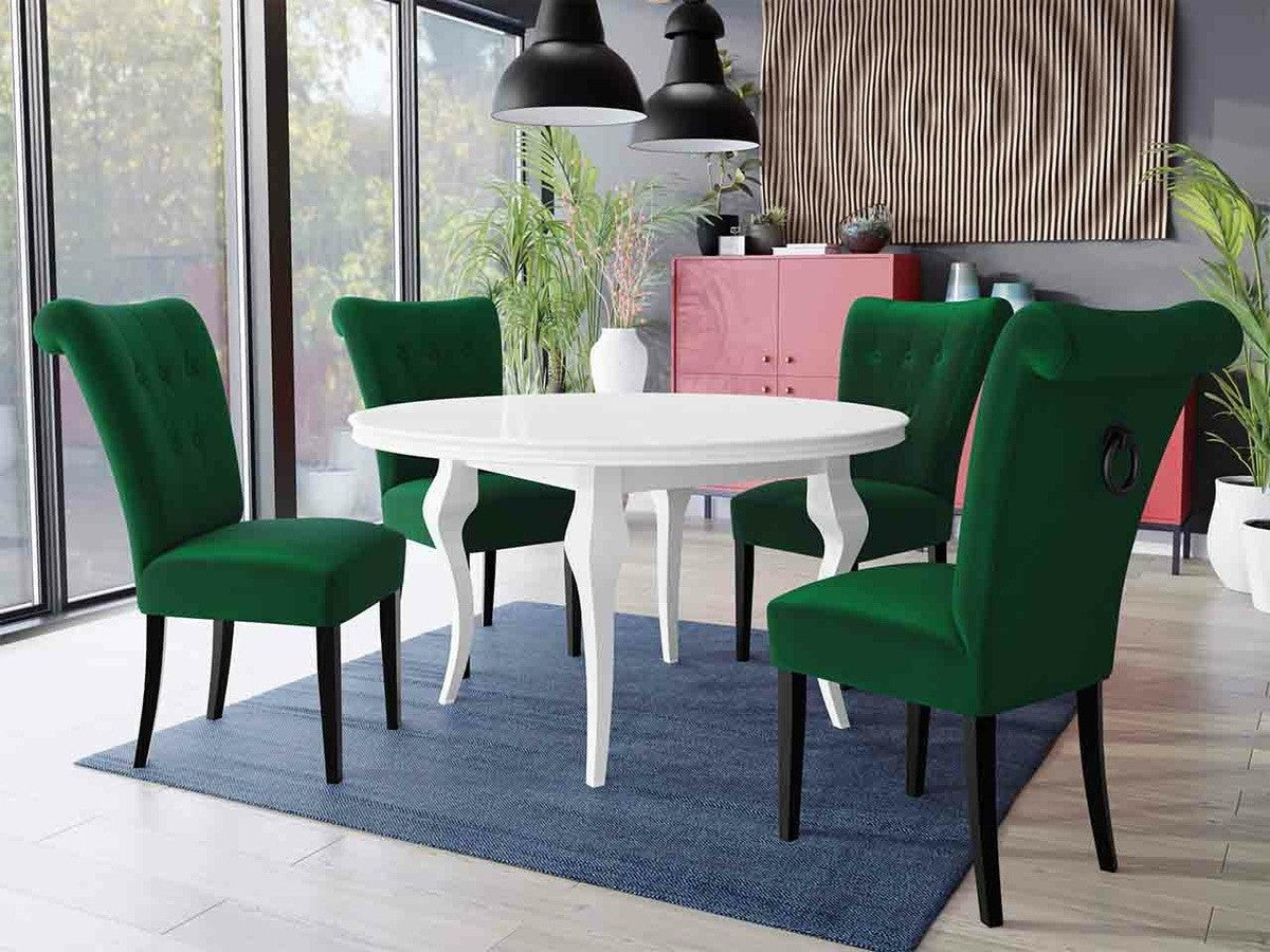 Étkezőgarnitúra Zestaw 10 4xS65 LARA FI, Színes dekorációk: Fekete, Szék színe: Fekete + Magic Velvet 2225
