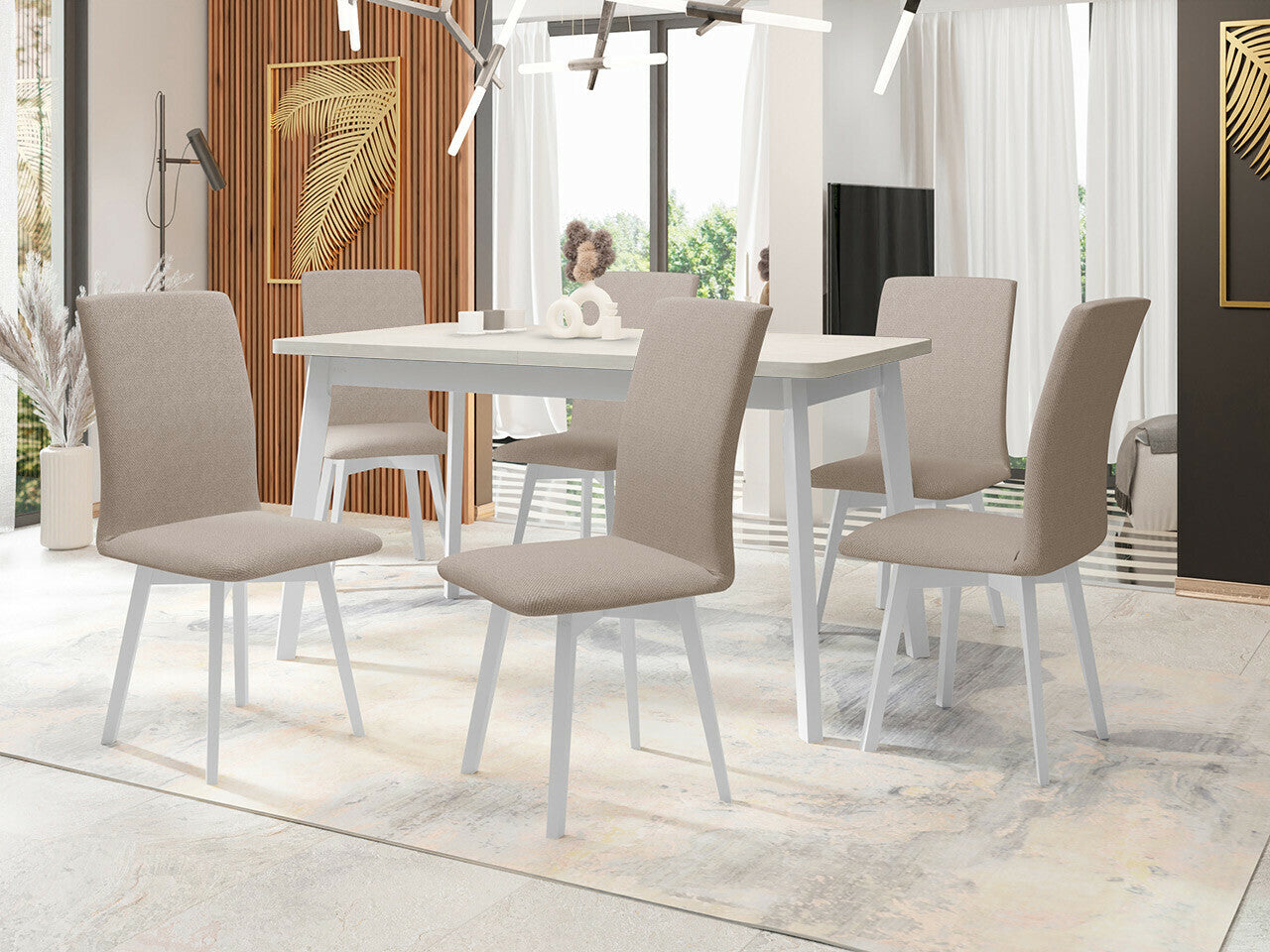 Étkezőgarnitúra Zestaw 24 (OSLO 6 + LUNA 2), Fa színe: Fehér, Kárpit: Paros 2