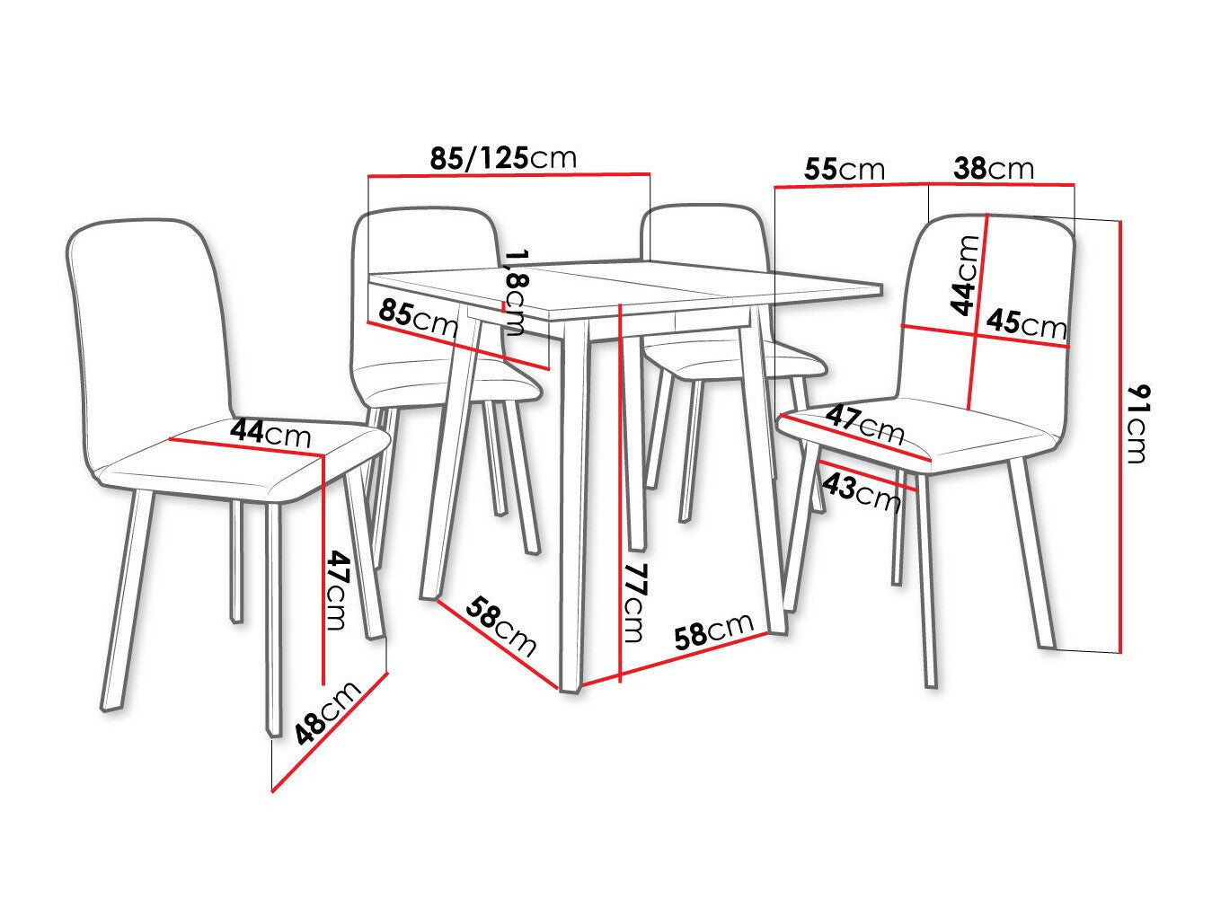Étkezőgarnitúra Zestaw ARIEL S + 4 x LUKE, Fa színe: Fehér + Fekete, Kárpit: Amor Velvet 4302