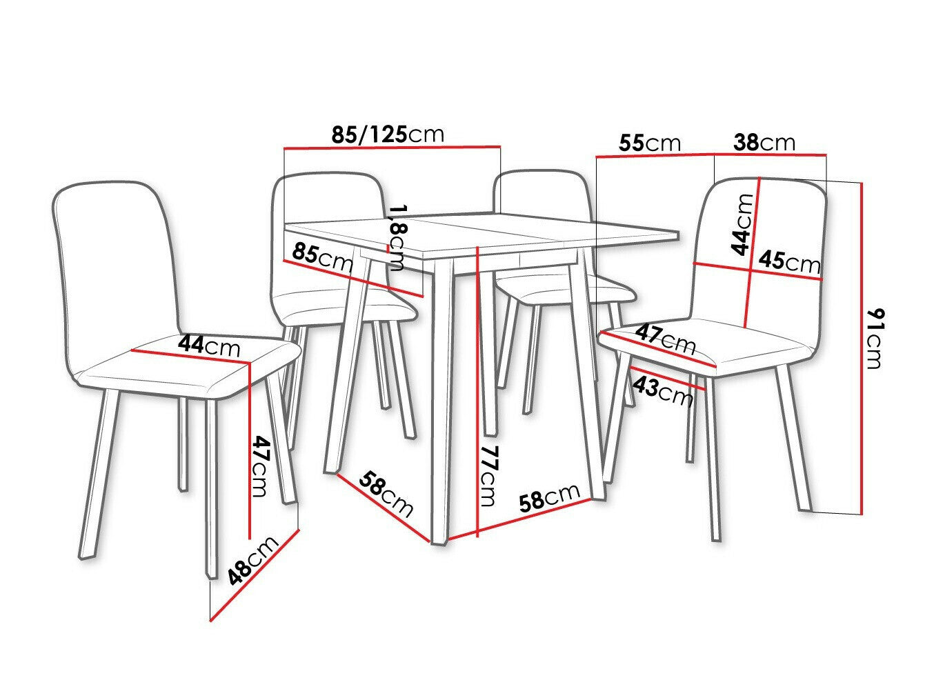 Étkezőgarnitúra Zestaw ARIEL S + 4 x LUKE, Fa színe: Fehér + Fekete, Kárpit: Amor Velvet 4318