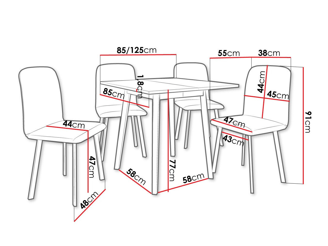 Étkezőgarnitúra Zestaw ARIEL S + 4 x LUKE, Fa színe: Fehér + Fekete, Kárpit: Amor Velvet 4321