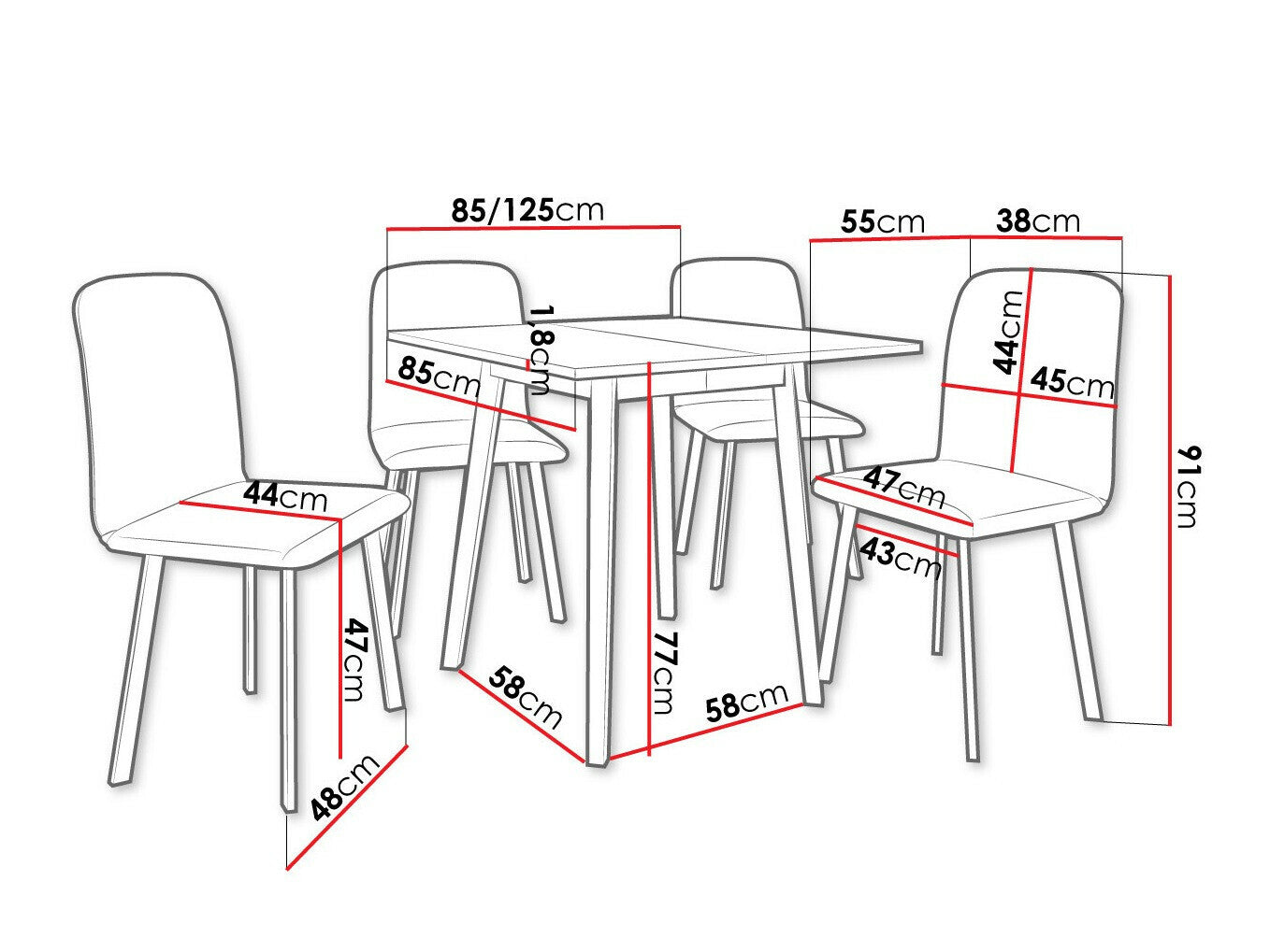 Szék méretek91 x 48 x 55 cm