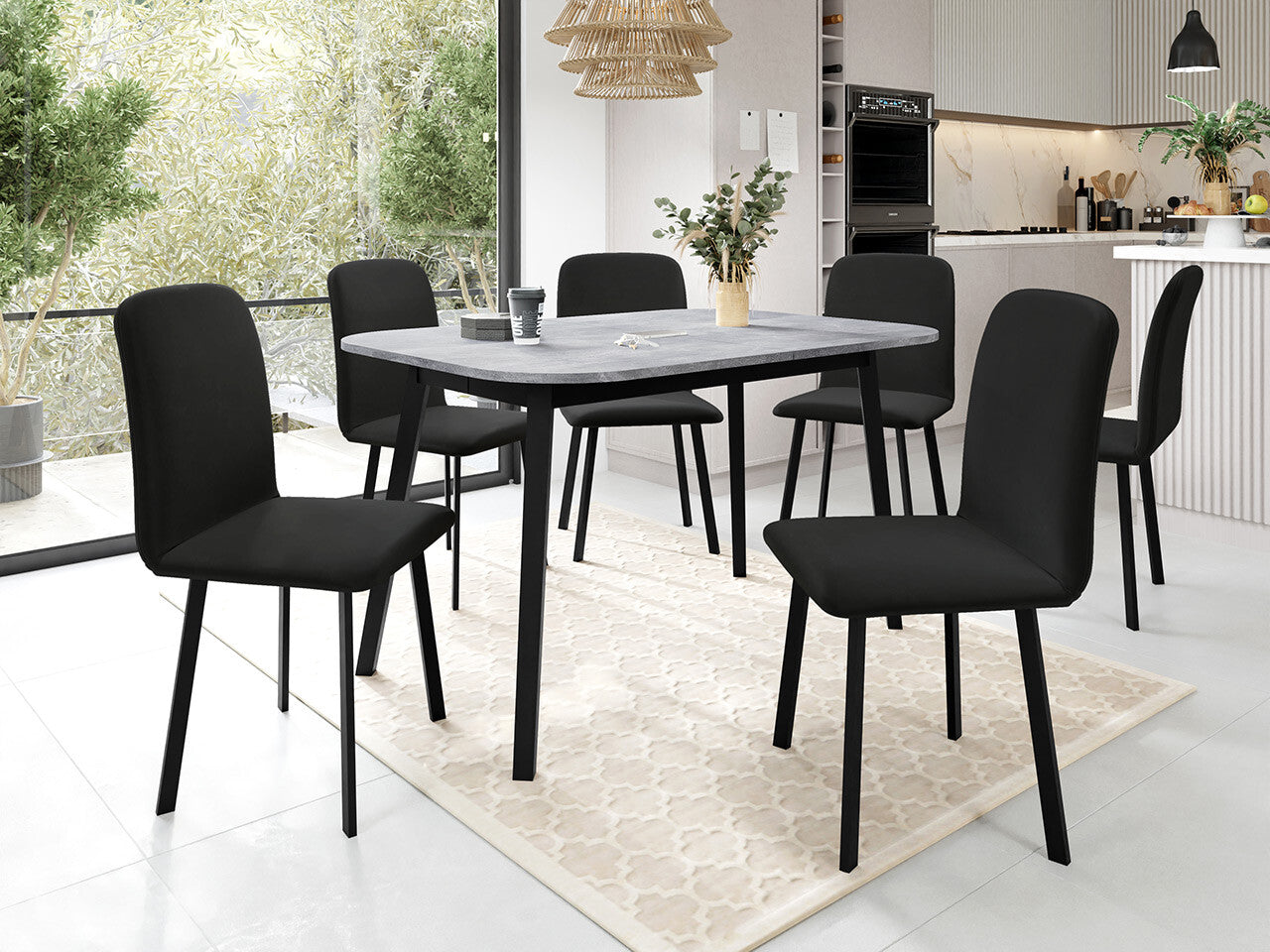 Étkezőgarnitúra Zestaw DEIMOS S + 6 x LUKE, Fa színe: Szürke márvány + Fekete, Kárpit: Amor Velvet 4322