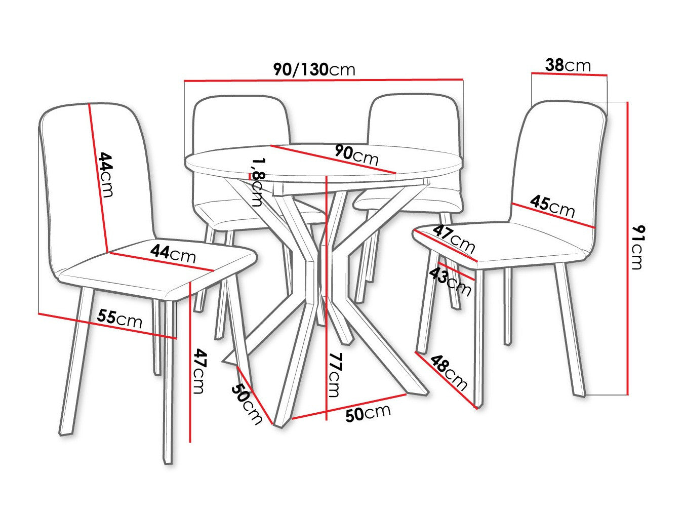 Szék méretek91 x 48 x 55 cm