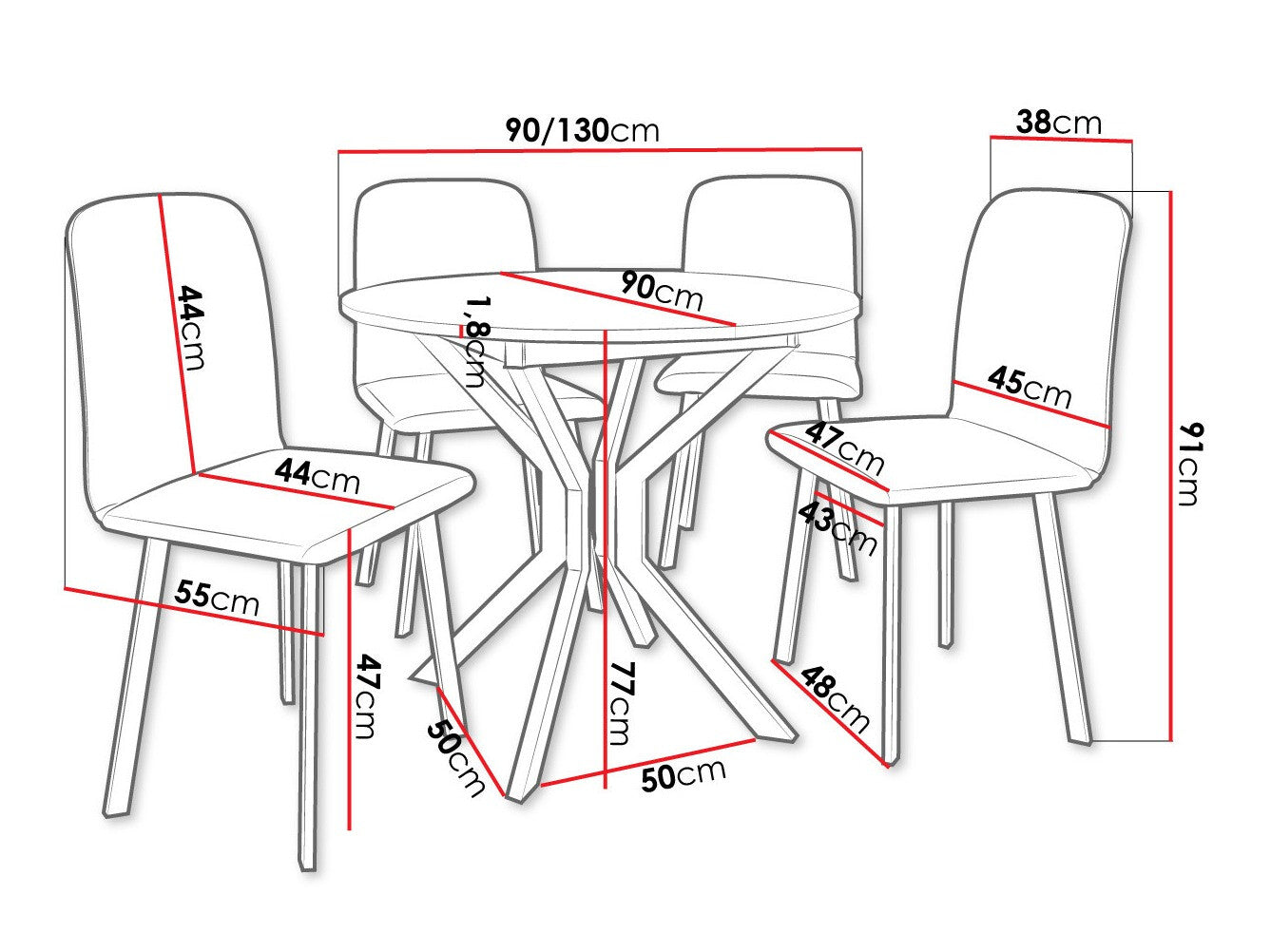 Étkezőgarnitúra Zestaw DIONE M + 4 x LUKE, Fa színe: Kézműves aranytölgy + Fekete, Kárpit: Amor Velvet 4302