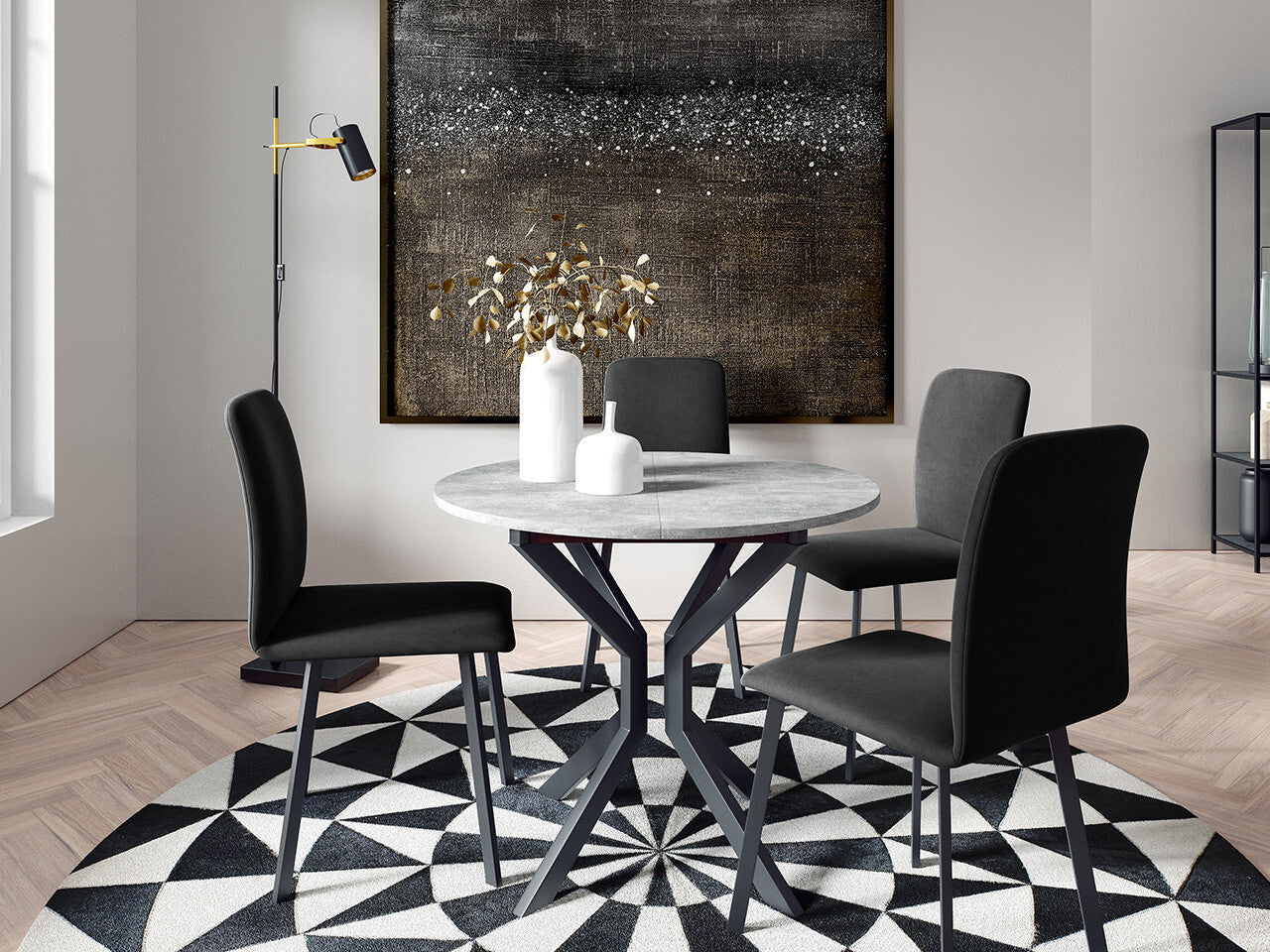 Étkezőgarnitúra Zestaw DIONE M + 4 x LUKE, Fa színe: Szürke márvány + Fekete, Kárpit: Amor Velvet 4321