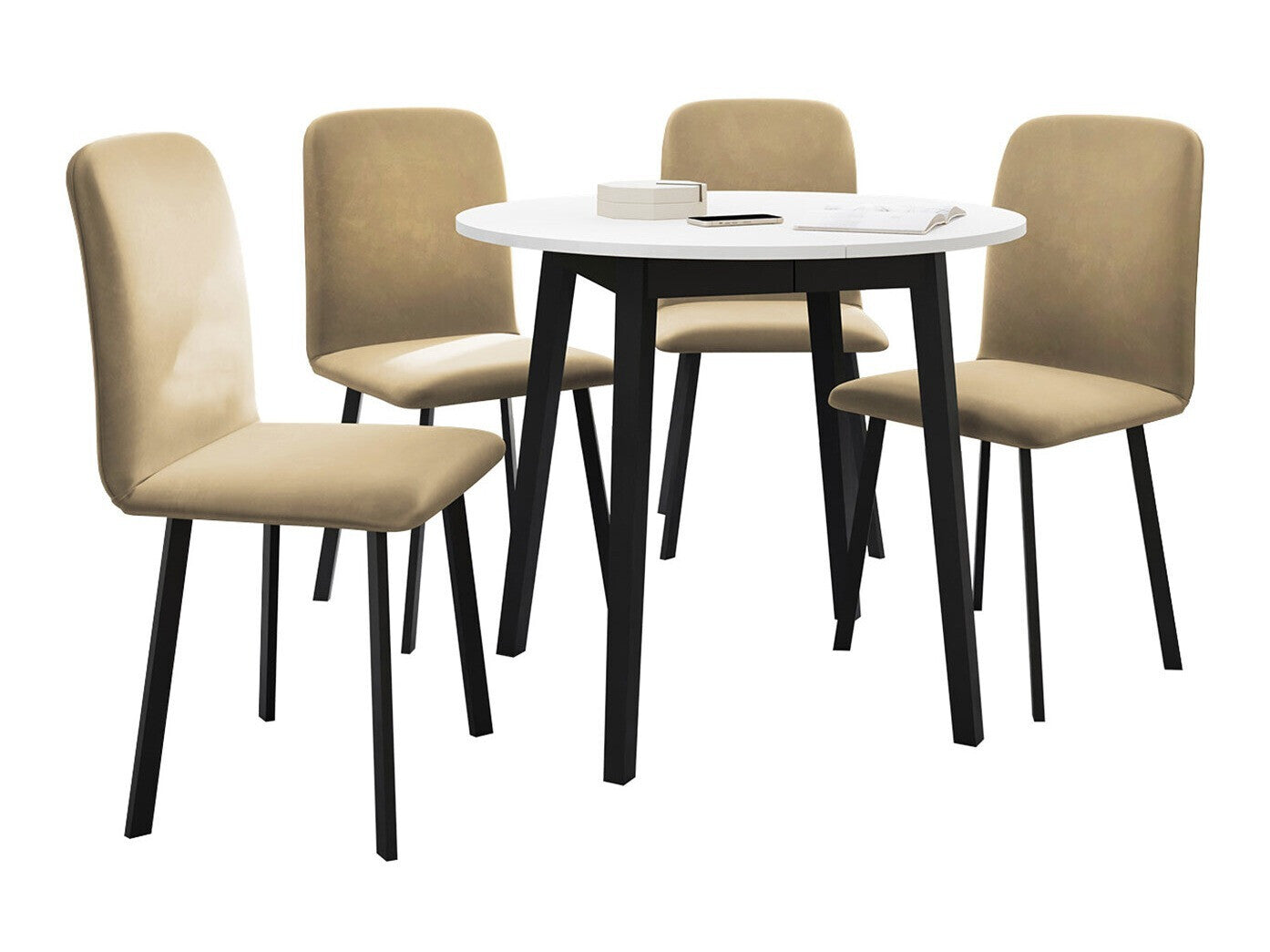 Étkezőgarnitúra Zestaw DIONE S + 4 x LUKE, Fa színe: Fehér + Fekete, Kárpit: Amor Velvet 4302