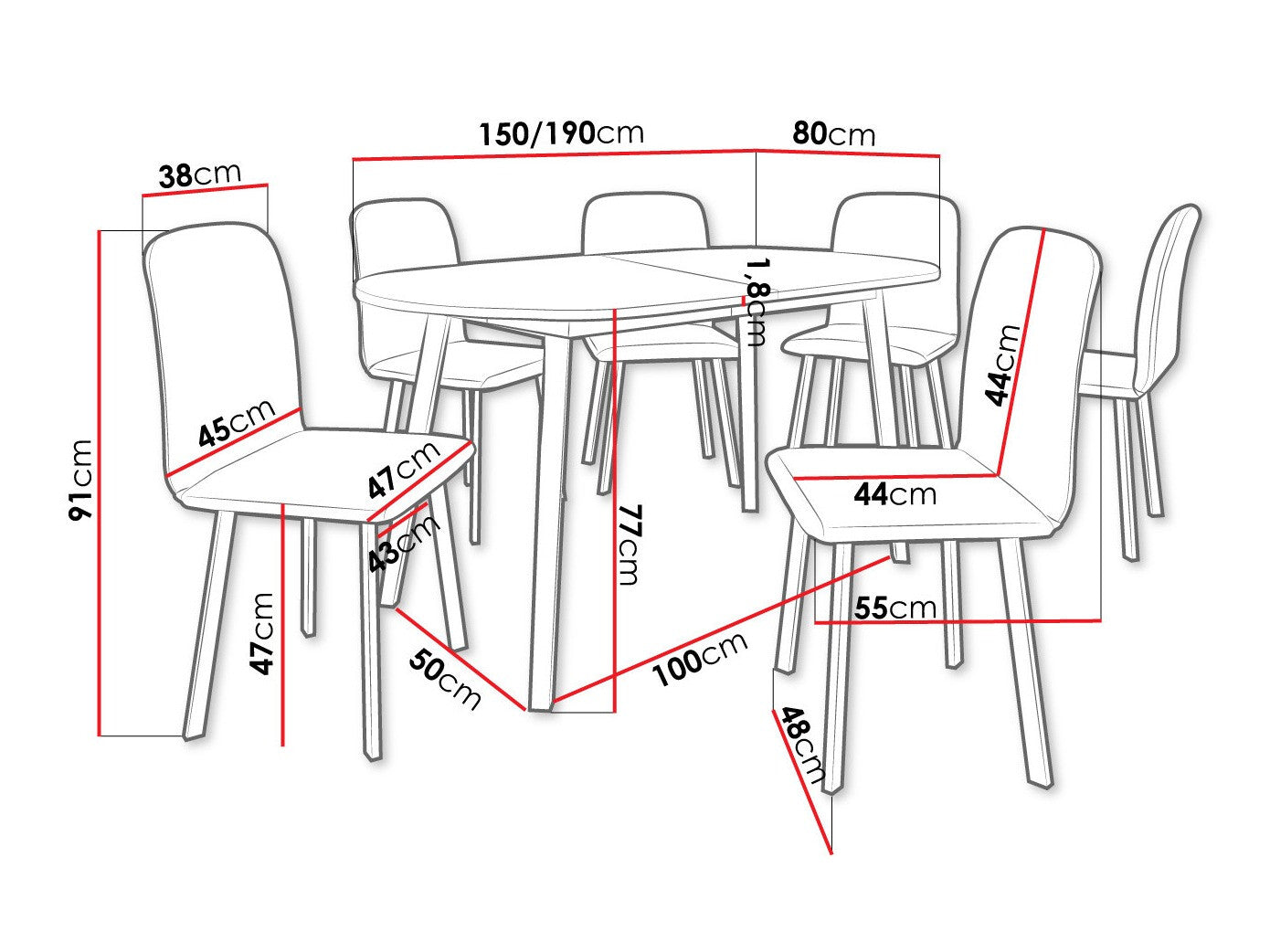 Étkezőgarnitúra Zestaw KLEBO S + 6 x LUKE, Fa színe: Fehér + Fekete, Kárpit: Amor Velvet 4321