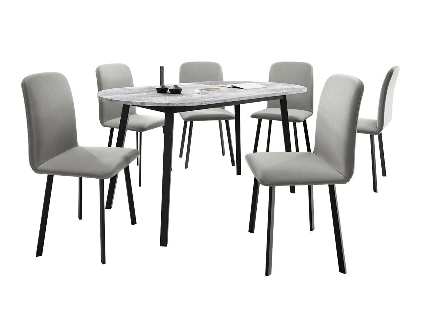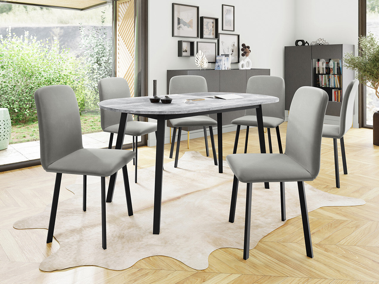 Étkezőgarnitúra Zestaw KLEBO S + 6 x LUKE, Fa színe: Szürke márvány + Fekete, Kárpit: Amor Velvet 4318