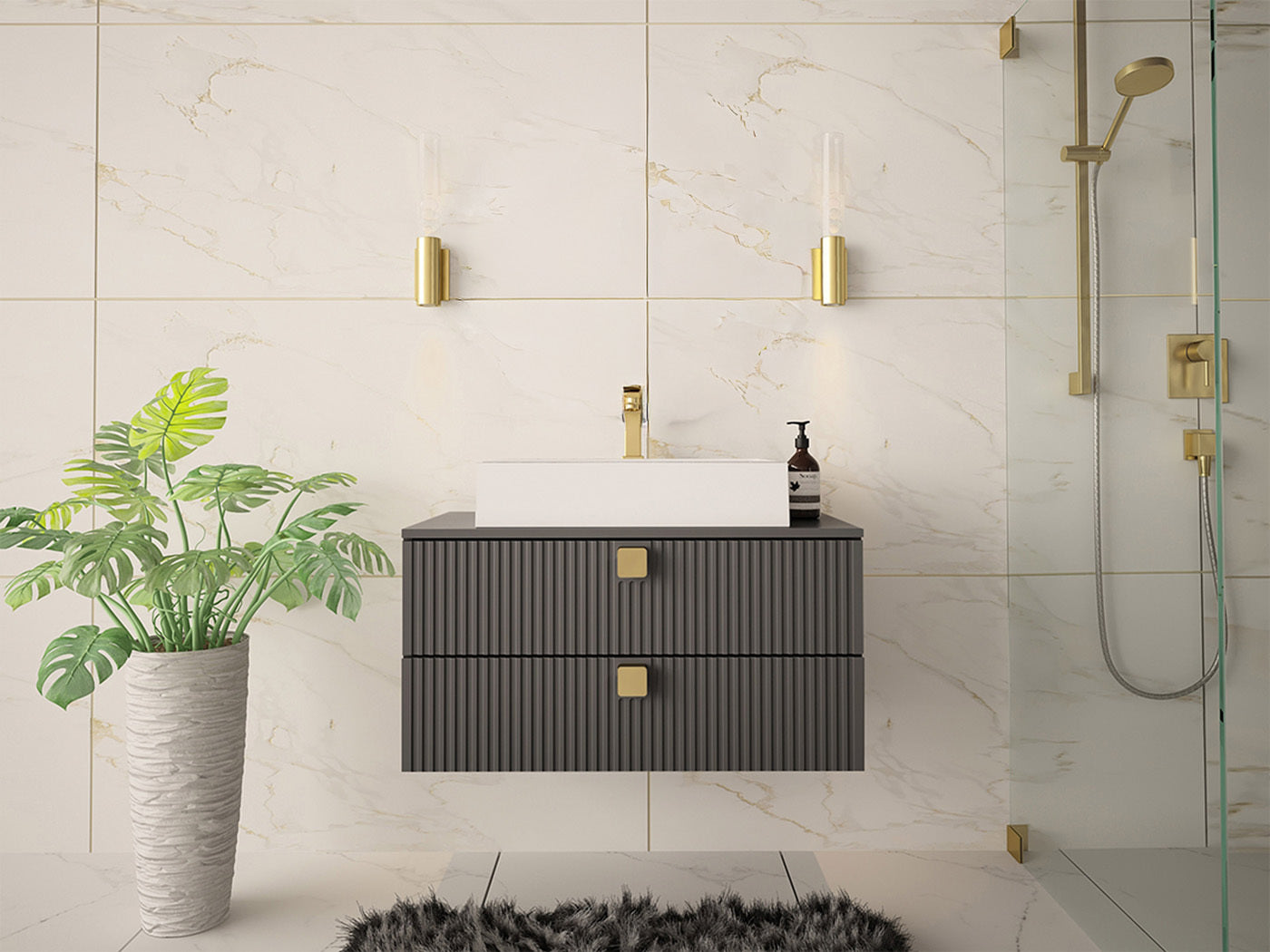 Fali szekrény mosdónak GARIANO 01, Szín: Szürke, Mosdókagyló: Igen