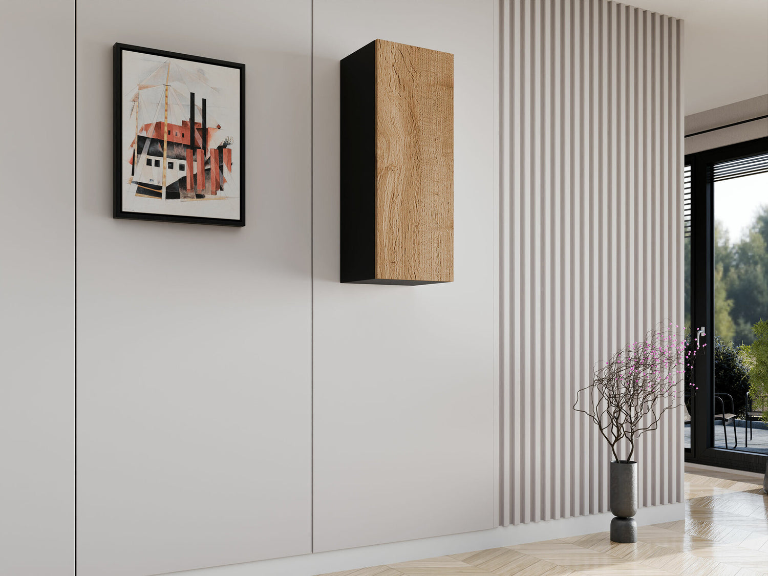 Fali szekrény Vigo 90 (Zigo 90), Szín: Fekete + Wotan tölgy