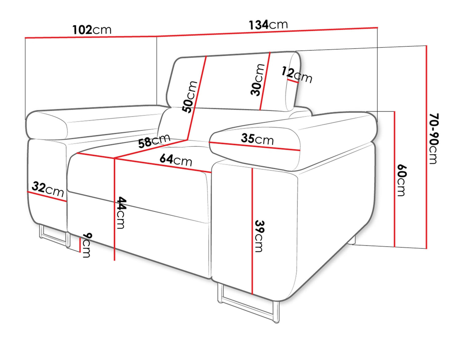 Üléspárna mélység58 cm