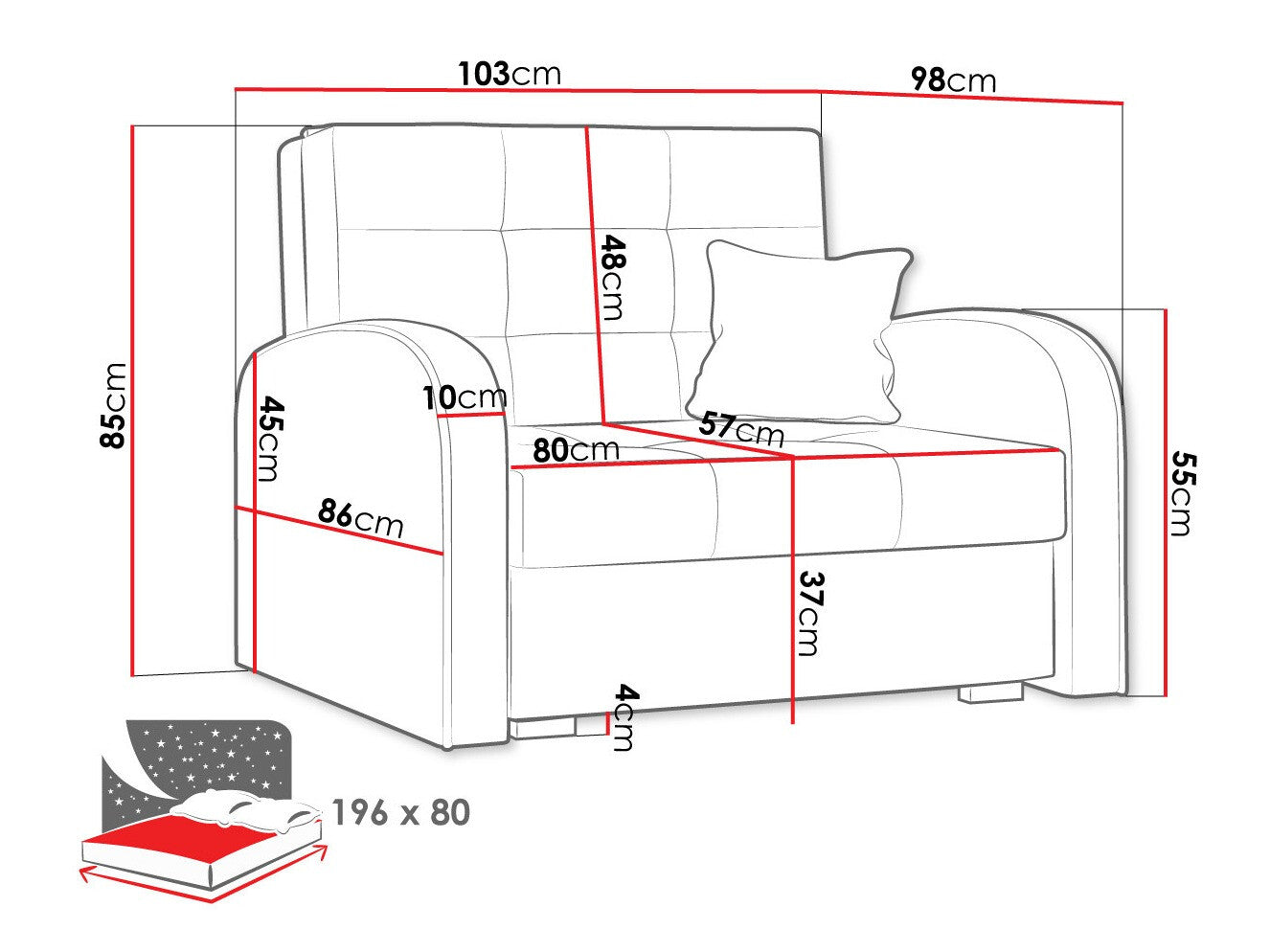 A fekvőfelület szélessége80 cm