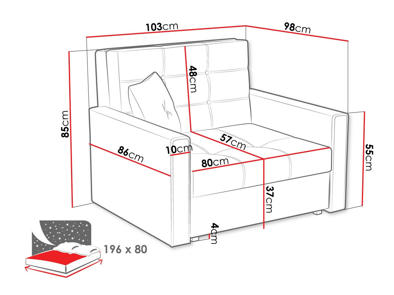 Üléspárna mélység57 cm