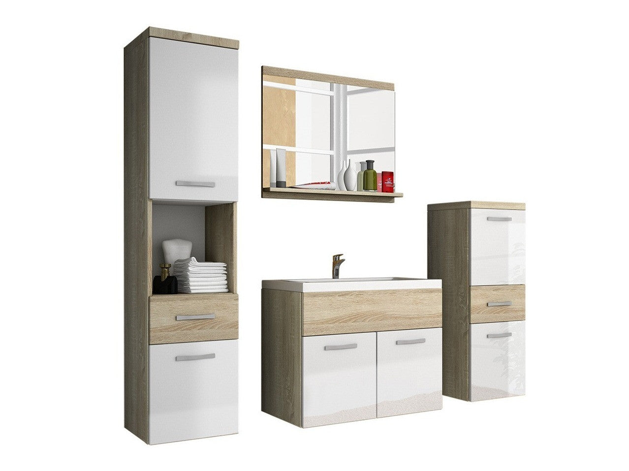 Fürdőszoba garnitúra Alba / bella (Lumia), Szín: Sonoma tölgy + Fényes fehér