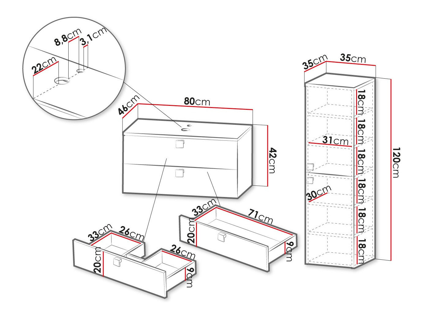 Mosdószekrény méretei42 x 80 x 46 cm