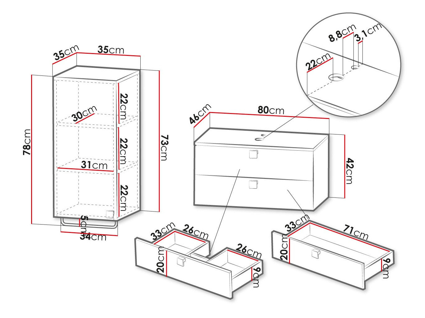 Függesztett szekrény méretei78 x 35 x 35 cm