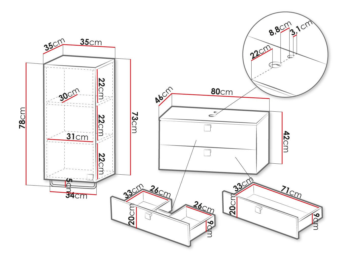 Függesztett szekrény méretei78 x 35 x 35 cm