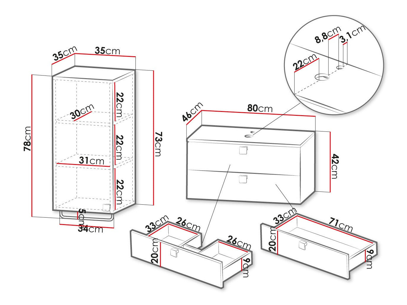 Mosdószekrény méretei42 x 80 x 46 cm