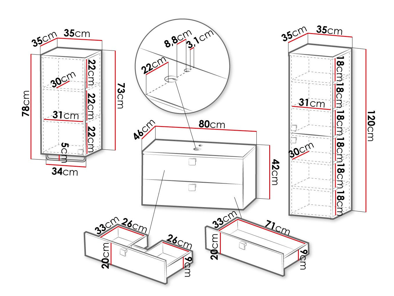 Függesztett szekrény méretei78 x 35 x 35 x 35 x 35 cm
