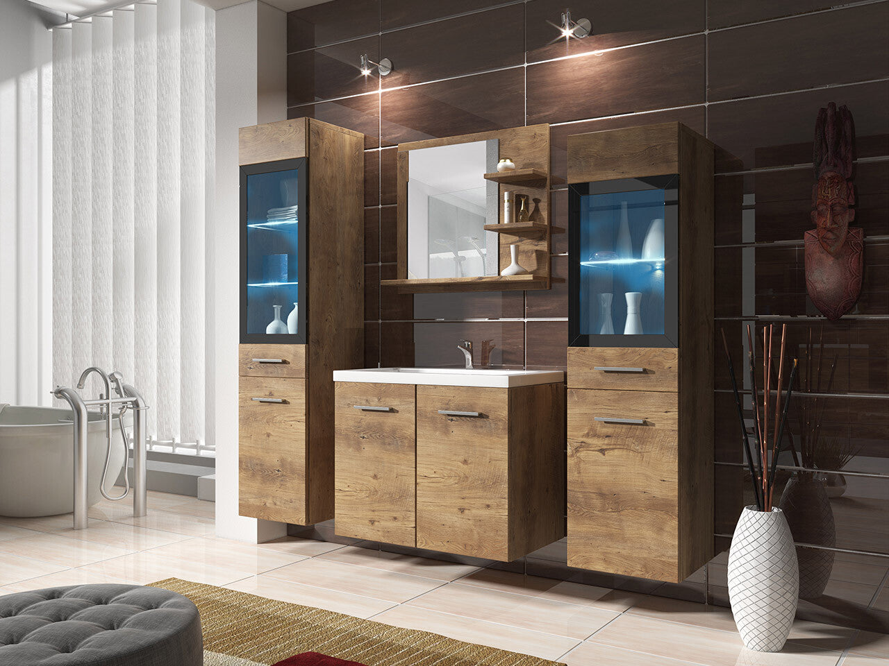 Fürdőszoba garnitúra MADRIT I, Szín: Gesztenye, Led világítás: Igen RGB