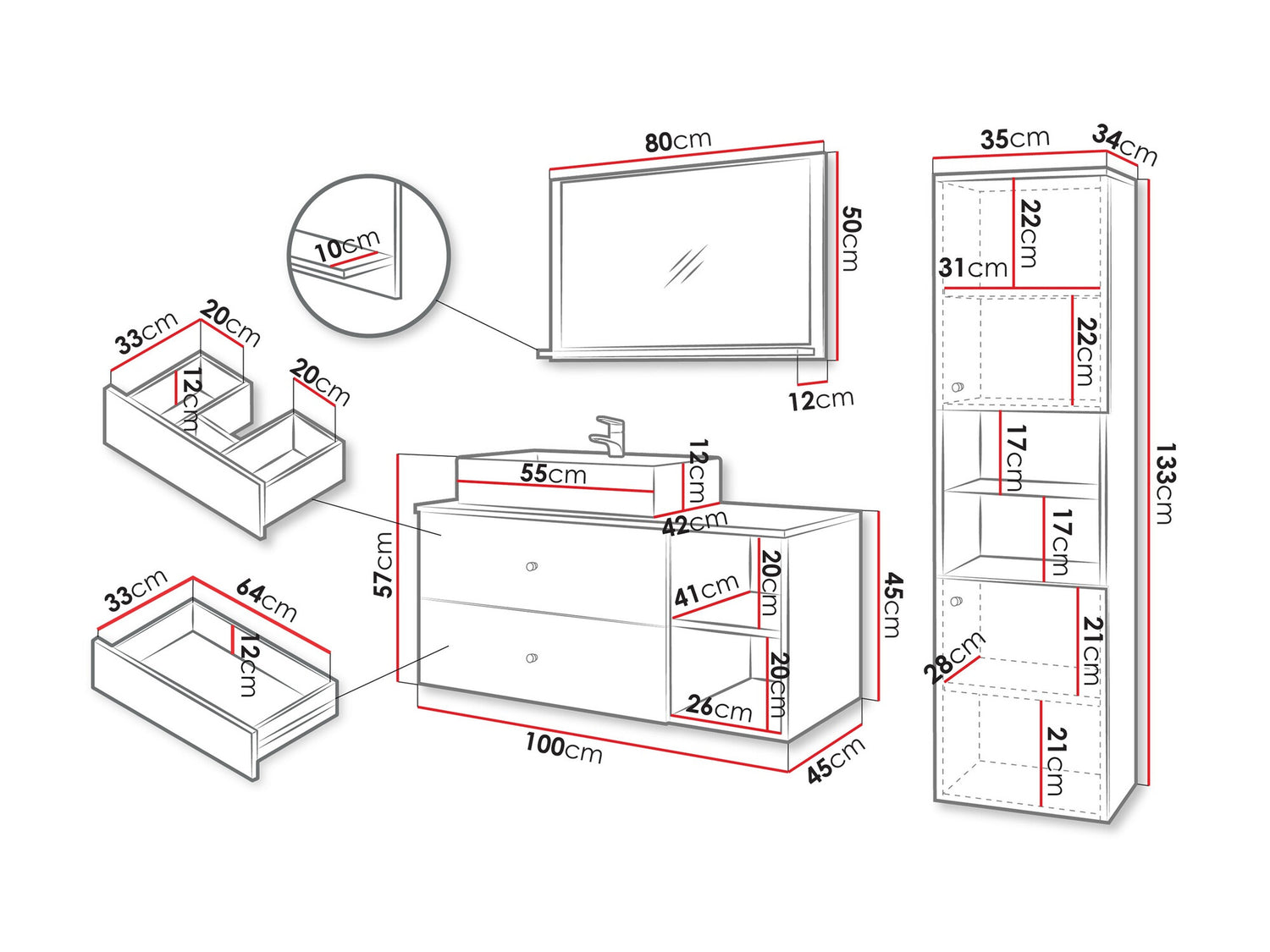 Fürdőszoba garnitúra Meble łazienkowe KERTOS II, Szín: Fehér, Mosdókagyló: Igen