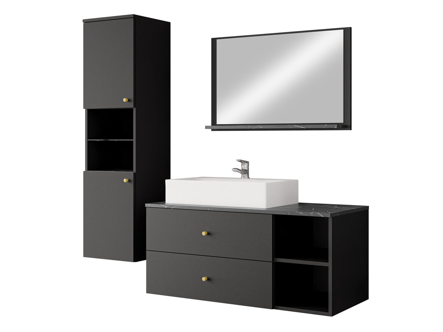 Fürdőszoba garnitúra Meble łazienkowe KERTOS II, Szín: Fekete, Mosdókagyló: Nem